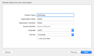 If you start the project you can navigate from the start screen to the second screen and back. Now I'll implement the logic to show a fullscreen (interstitial) ad after each third navigation to the second screen.Add the iAD framework to your project: